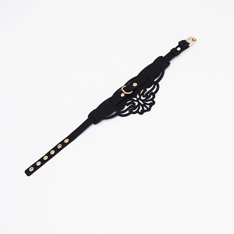 Чокер фигурный из натуральной кожи, украшенный узорами. Каждый элемент дизайна тщательно проработан, чтобы подчеркнуть красоту и элегантность изделия. Золотая фурнитура, сверкающая на фоне черной кожи, добавляет утонченности и изысканности. Доставляется в фирменной упаковке в виде брендированной деревянной подложки.