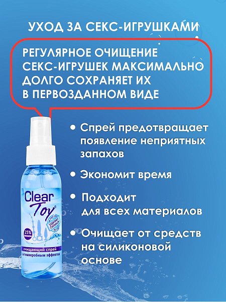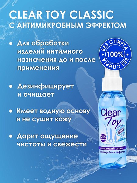 Хороший секс, в том числе с использованием интимных аксессуаров, - это невероятное удовольствие. Но не стоит забывать о гигиене. После применения поверхность секс-игрушек необходимо тщательно очистить. С помощью спрея Clear Toy это можно сделать легко и быстро.